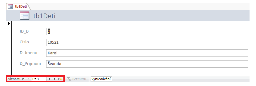 navigační tlačítka, která dovolují přecházet mezi záznamy, aniž by